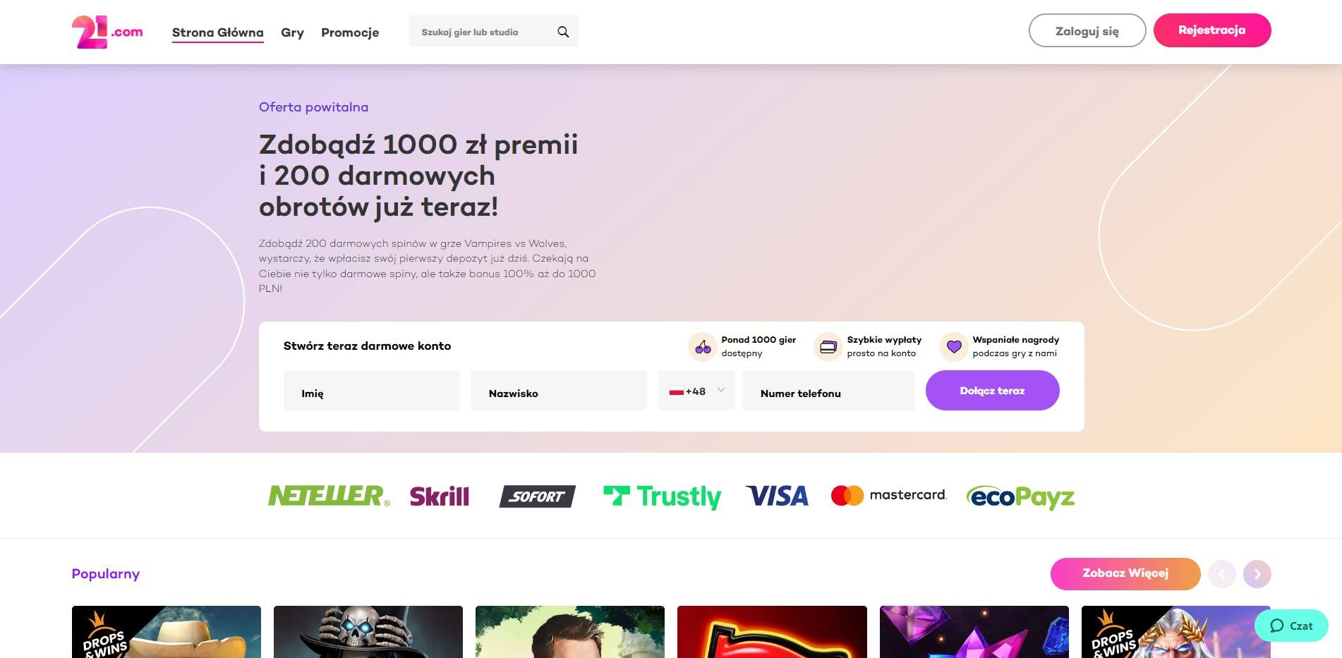 Wybór i oferta gier 21.com